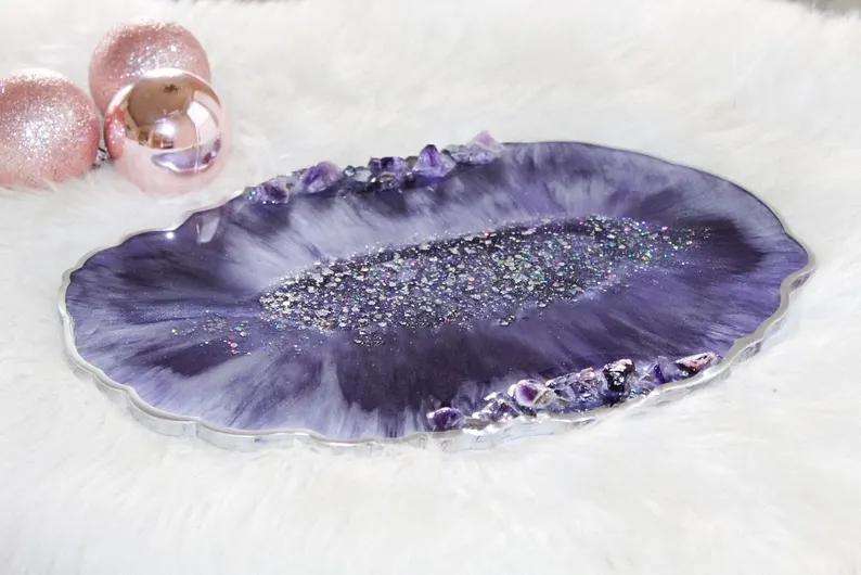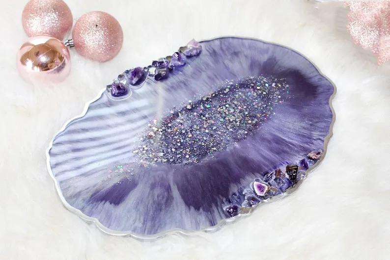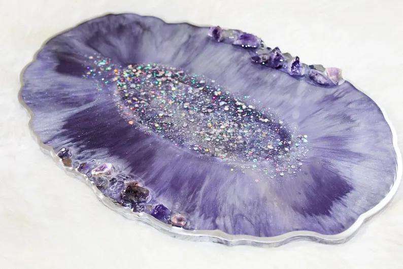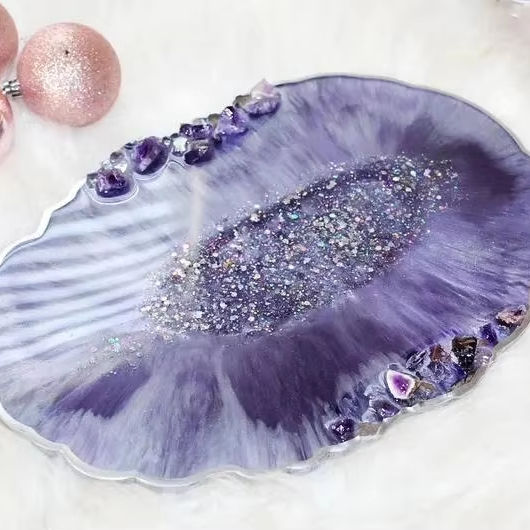 Elegante bandeja de Arte de resina personalizada, bandeja de tocador grande hecha a mano para decoración de mesa de centro de boda, la mejor calidad a un precio razonable