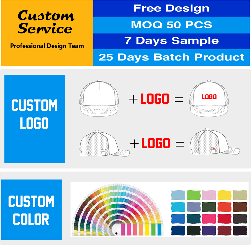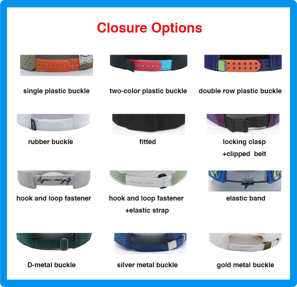 Posición del logotipo:Ala/visera, Panel frontal, Panel izquierdo, Panel derecha, Parte trasera curva