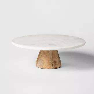 Elegante soporte para pasteles de mármol con base de madera, plato para pasteles de mármol y madera a un muy buen precio de fábrica.