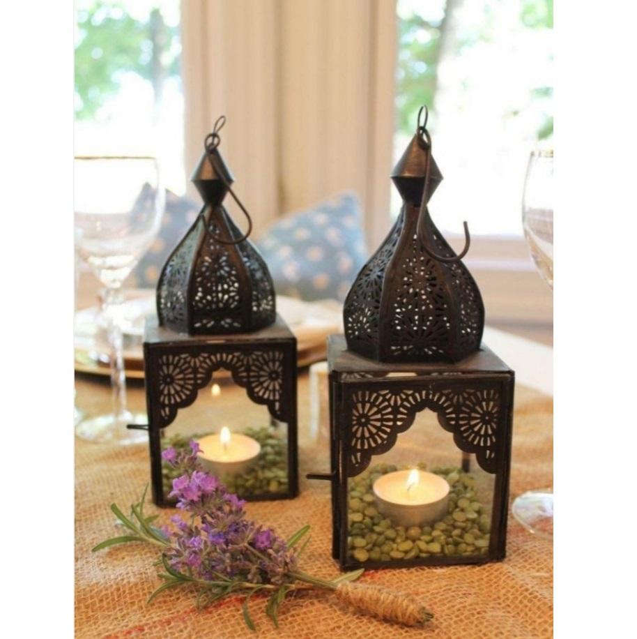 Juego de dos faroles de hierro de color negro con diseño elegante, estilo marroquí, tamaño y forma personalizados, farol colgante para hotel y restaurante.