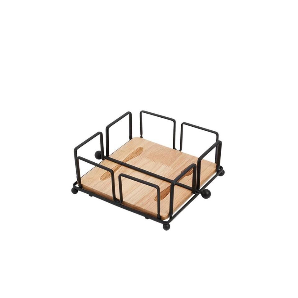 Dispensador de Servilletas de Diseño Elegante, Moderno Porta Servilletas de Metal Negro con Base de Madera para Mesa de Comedor y Restaurante