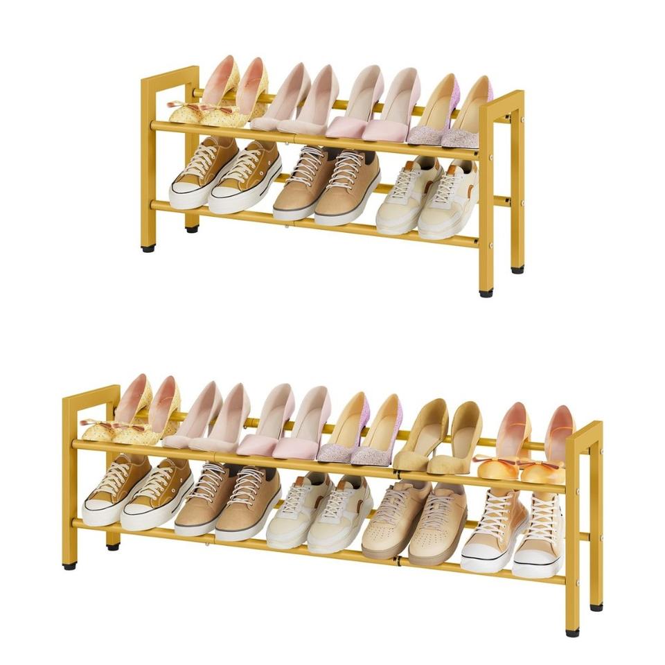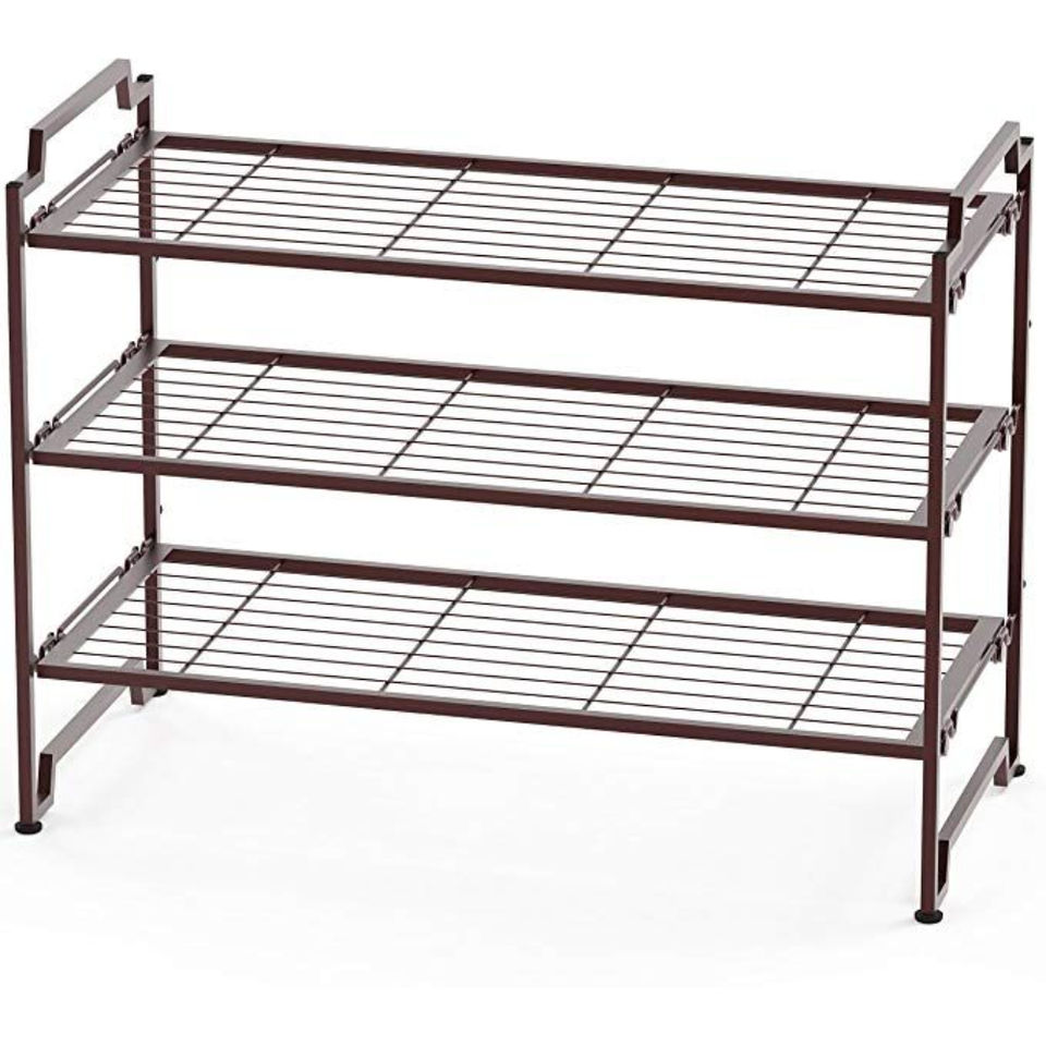 Elegante Zapatero de Diseño de 3 Niveles Apilable con Rejilla Metálica y Estantes para Organización, Acabado Bronce Metálico