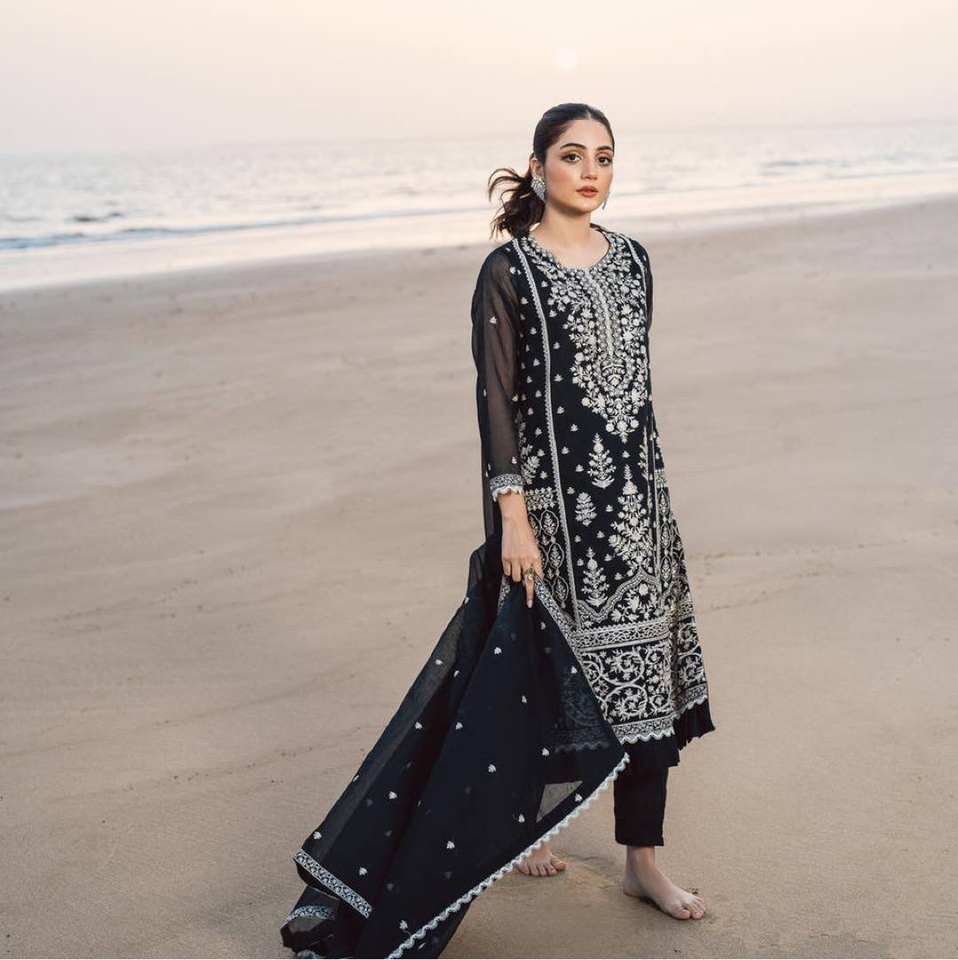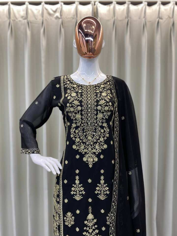 Top bordado de lentejuelas de imitación Georgette de diseñador elegante con pantalón y traje de fiesta Dupatta para mujer hecho en India