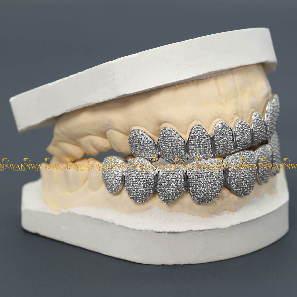 Diseñador elegante Iced Out Grillz personalizado para hombre elaborado en plata de ley 925 con diamantes de moissanita de claridad Vvs mejorados