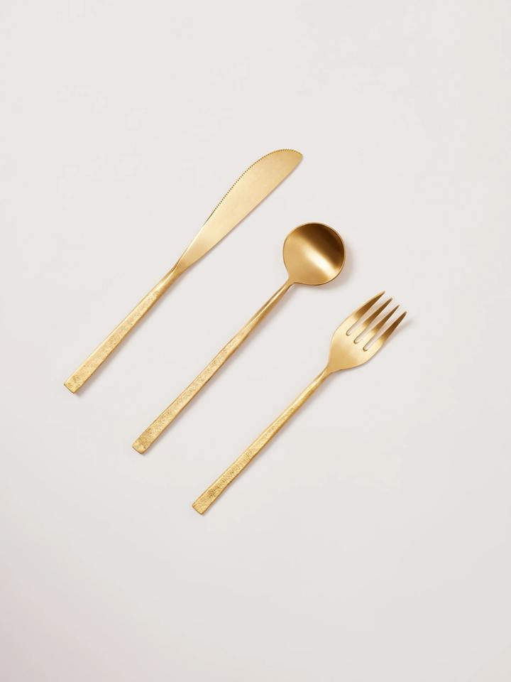 Elegante Juego de Cubiertos Metálicos para Comedor, Cuchara, Tenedor y Cuchillo, Diseñado para Servicios de Alta Gama
