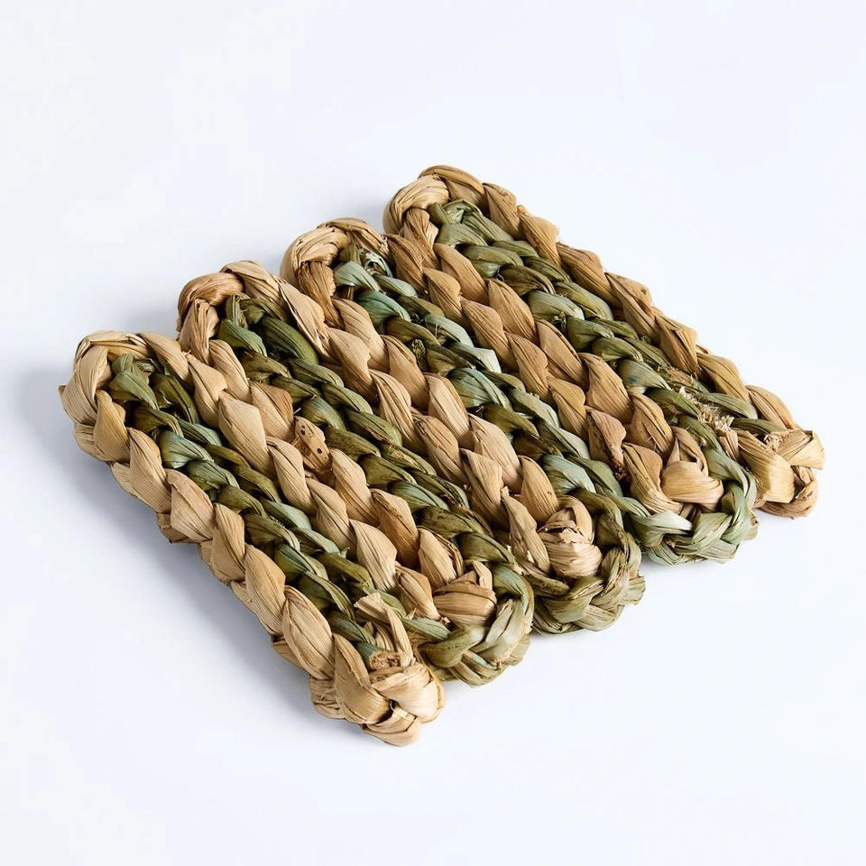 Accesorios de comedor con estilo, posavasos de jacinto de agua, Mantel Individual tejido a mano con borde ondulado