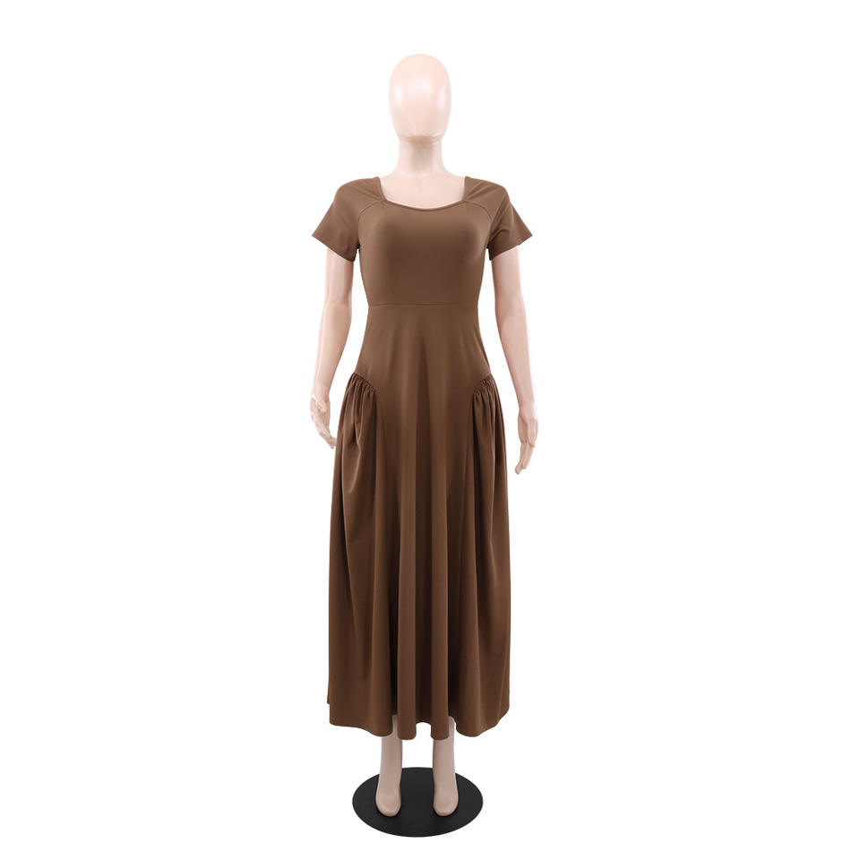 Elegante Vestido Maxi de Mujer con Pliegues, Doble Costura, Cintura Alta y Dobladillo Grande, a la Moda