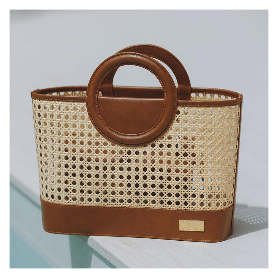 Bolso de Rafia de Tejido Abierto Elegante y Moderno, Bolsos de Mano de Ratán y Cuero con Detalles de Perlas y Diamantes de Lujo para Cualquier Ocasión