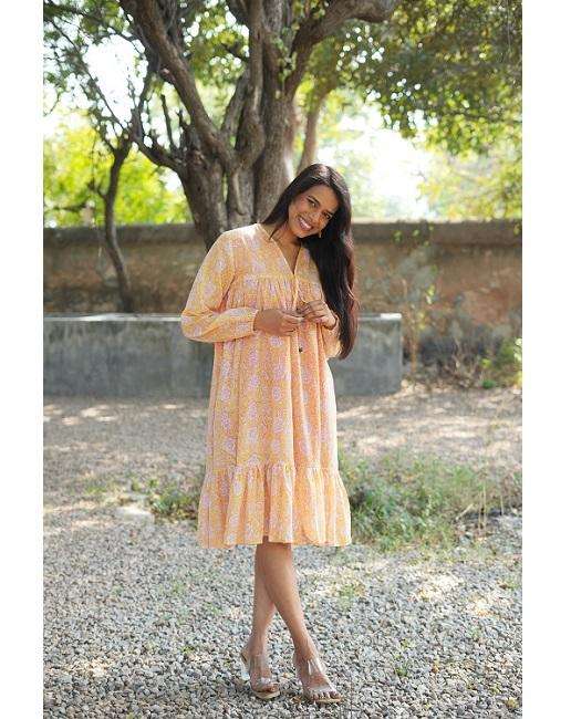 Vestido de algodón tejido acampanado con estilo para mujer, estampado en tonos sutiles, ligero, informal, de verano, ecológico, lavable, al por mayor