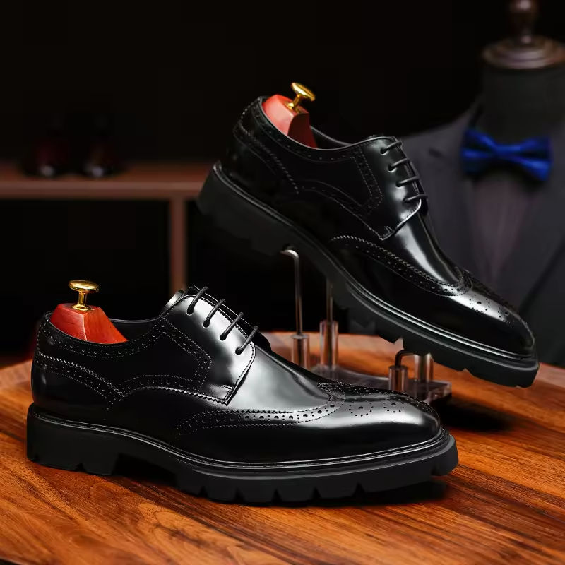 Elegantes Zapatos Oxford Formales de Cuero Vacuno Genuino para Hombre, con Cordones, Impermeables, Ligeros, Transpirables, con Suela de Goma Antideslizante