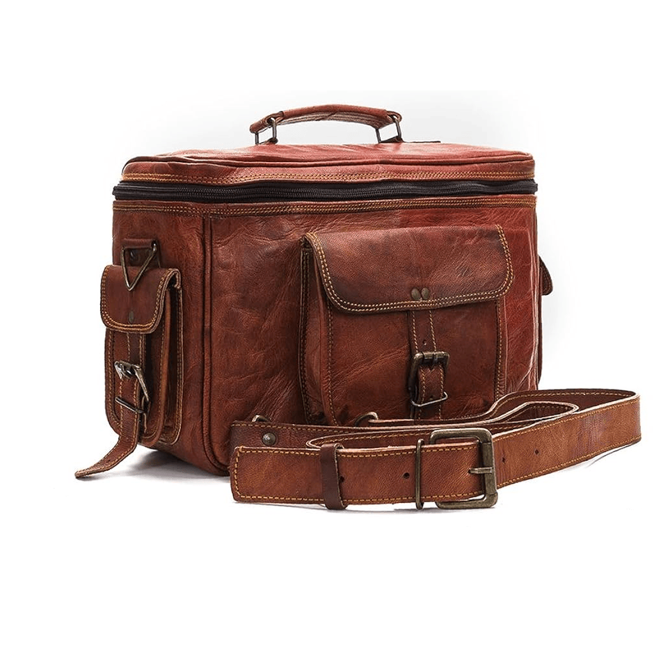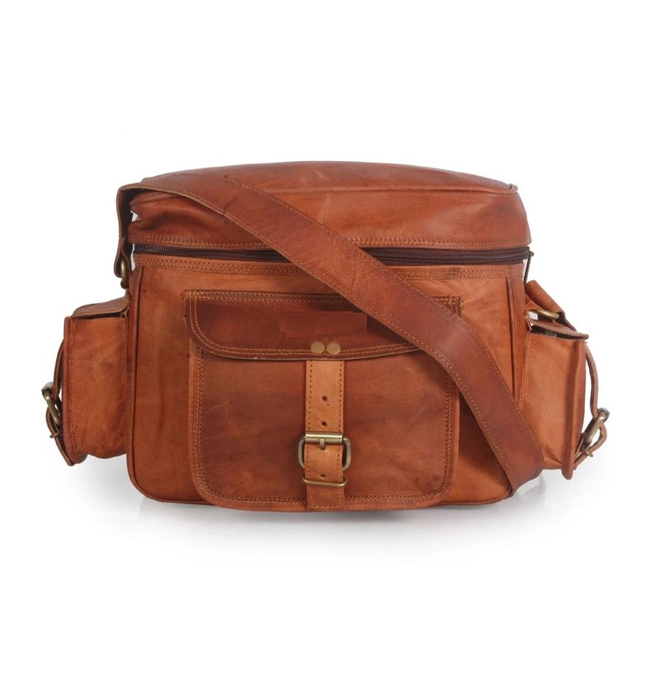 Elegante mochila de cámara DSLR de cuero genuino con funda de hombro segura Cierre de cremallera duradero Protector y de moda