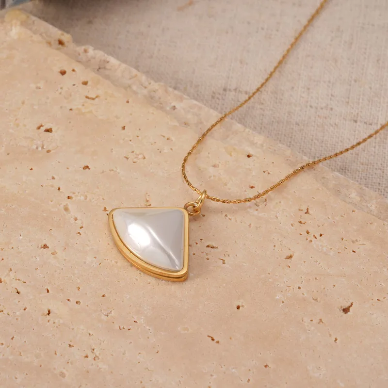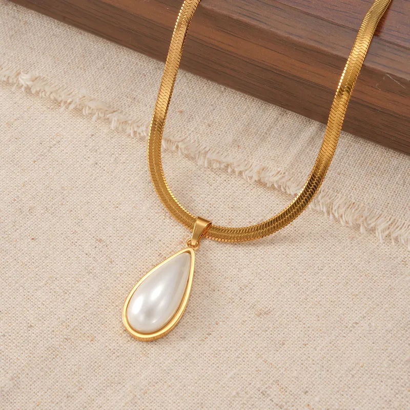 Elegante Collar con Colgante de Perlas Geométricas para Mujer, Acero Inoxidable 304, Chapado al Vacío, Resistente al Agua, Cadena que No se Destiñe, Joyería