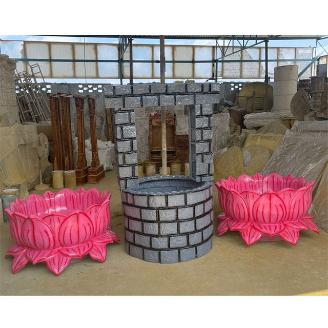 Utillaje de decoración de Ceremonia de FRP y buen rendimiento, estilo Haldi, FRP Lotus y Well, utilería para eventos de boda de estilo indio