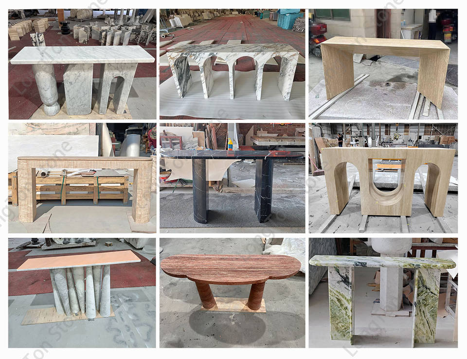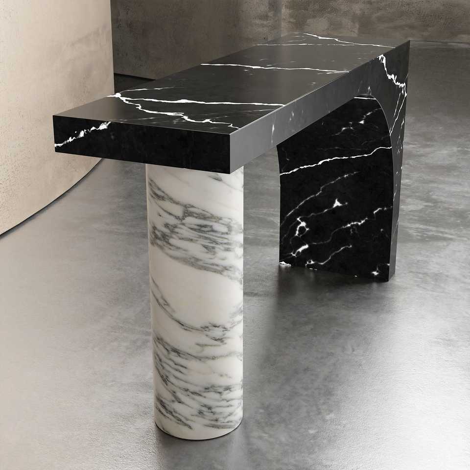 Elegante Mesa Consola de Mármol Hecha a Mano con Diseño de Arco, Mesa de Pasillo de Mármol Personalizada, Mesa Consola de Mármol Blanco Carrara y Negro Nero