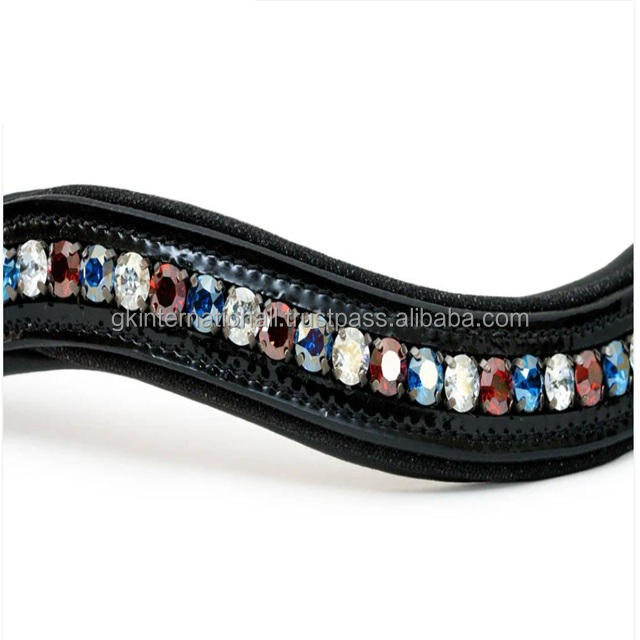 Elegante banda de ceja de caballo de cuero acolchada con forma de onda profunda hecha a mano con cristales brillantes redondos multicolores banda de CEJA ostentosa