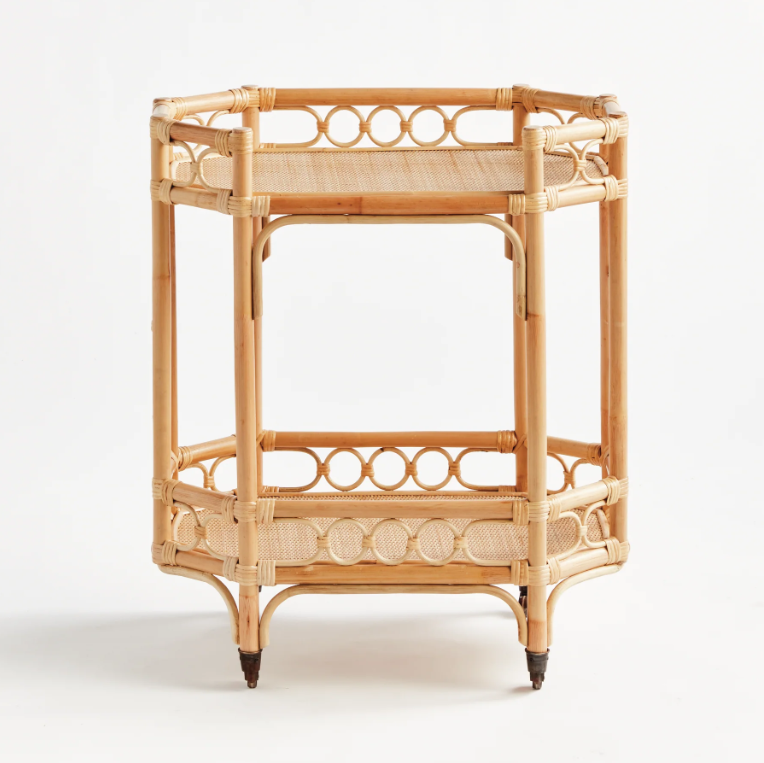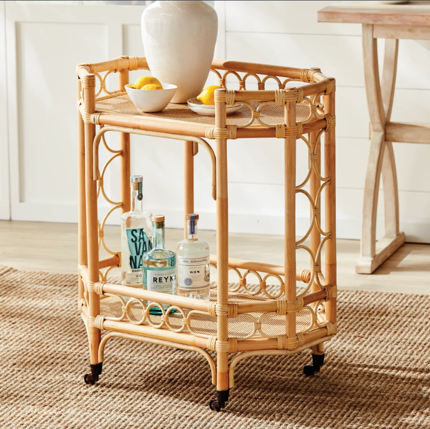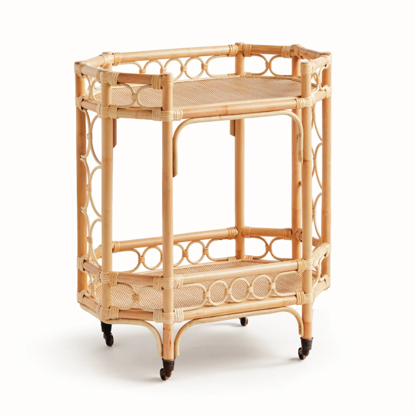 Carrito de mimbre hecho a mano con estilo, Material Natural, muebles de mimbre ecológicos, carrito de Bar bohemio, venta al por mayor de Vietnam