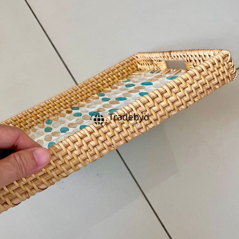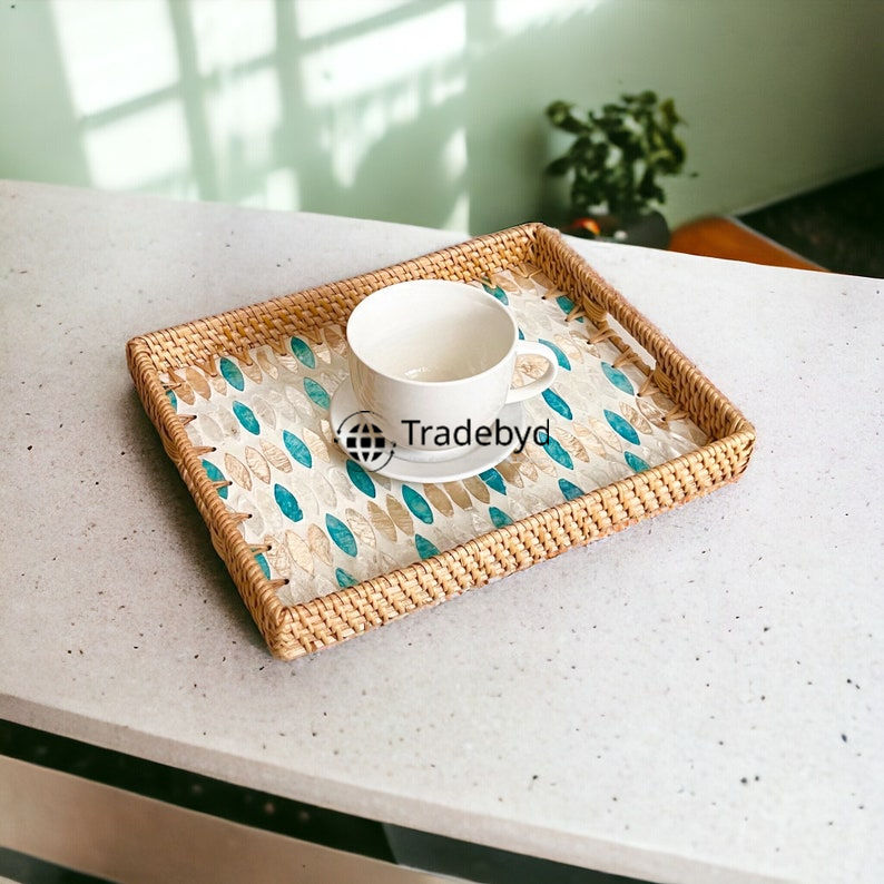 Elegante Bandeja de Ratán Hecha a Mano, Bandeja de Mesa Moderna, Calidad Premium, Almacenamiento y Decoración Móviles, Ideal para Regalos y Servicio, Tradebyd