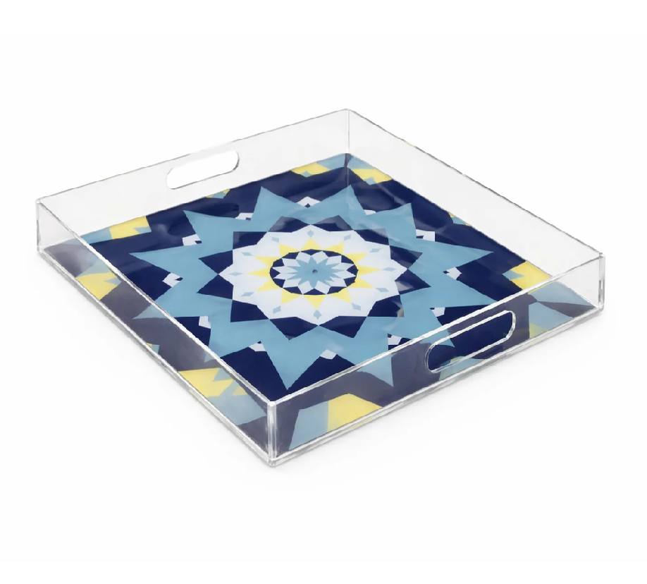 Elegante bandeja transparente de acrílico hecha a mano, perfecta para la decoración moderna del hogar y para servir desayuno, té, café y pan.