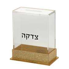 Elegante caja de acrílico hebreo Tzedaka Material de Lucite Elegante oro y plata Acentos Perfectos Donaciones de caridad Ajustes religiosos