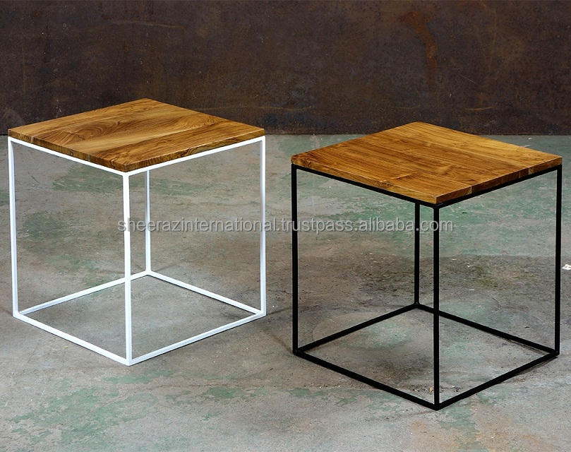 Mesa de centro moderna y elegante con tapa de madera Base de metal rústico Bandeja de almacenamiento que ahorra espacio con mesa auxiliar tallada casera