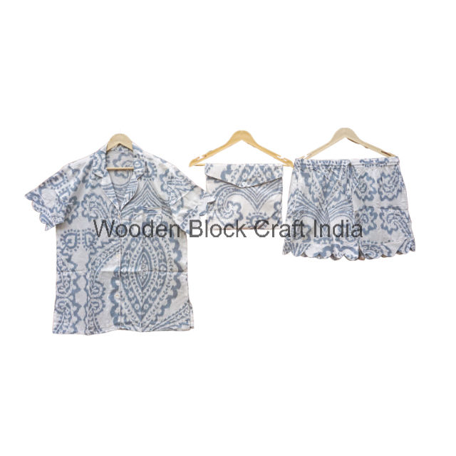 Conjunto Kangura de pijama de algodón hecho a mano con estilo indio, conjunto de Pijama corto de tendencia Vintage con estampado de bloques de mano