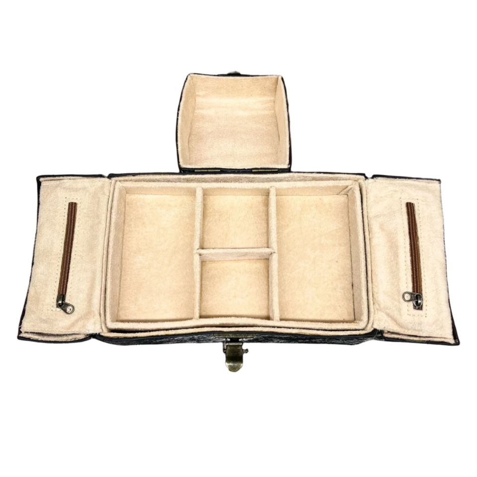 Elegante joyero de cuero de lujo con forro de terciopelo y compartimentos sin enredos hecho en India