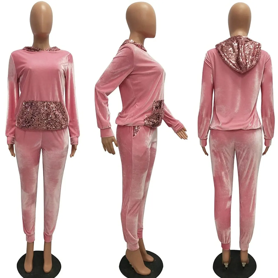 Chándal de terciopelo de talla grande para mujer, sudadera cómoda con pantalones de cintura elástica, ropa informal elegante para todos