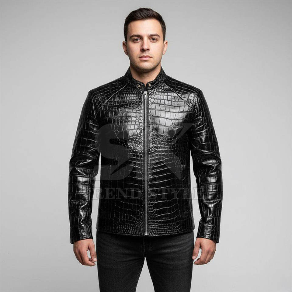 Nombre del producto:Chaqueta de cuero repujado de cocodrilo para hombre
