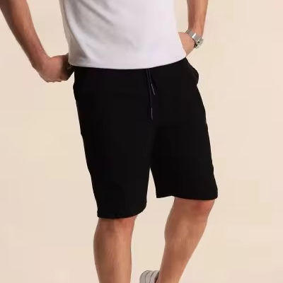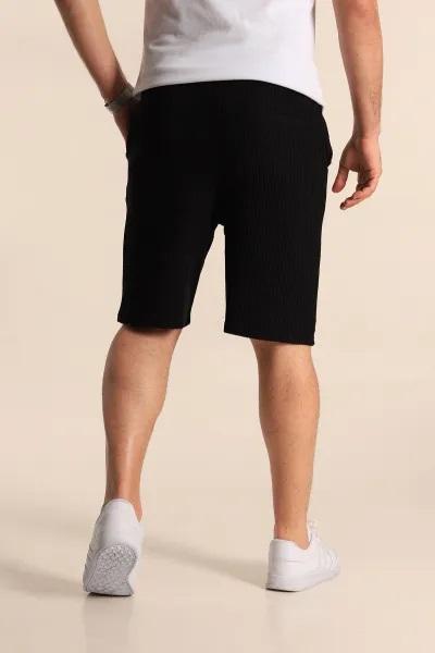 Pantalones cortos de tiro medio tejidos regulares negros para hombres con estilo, cuatro bolsillos, cierre de botón con cremallera y cinturón