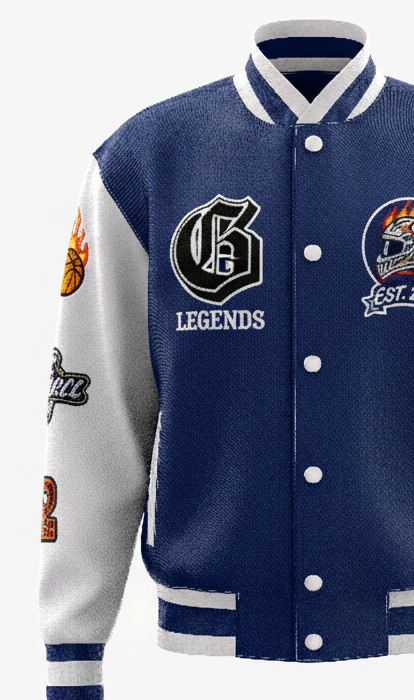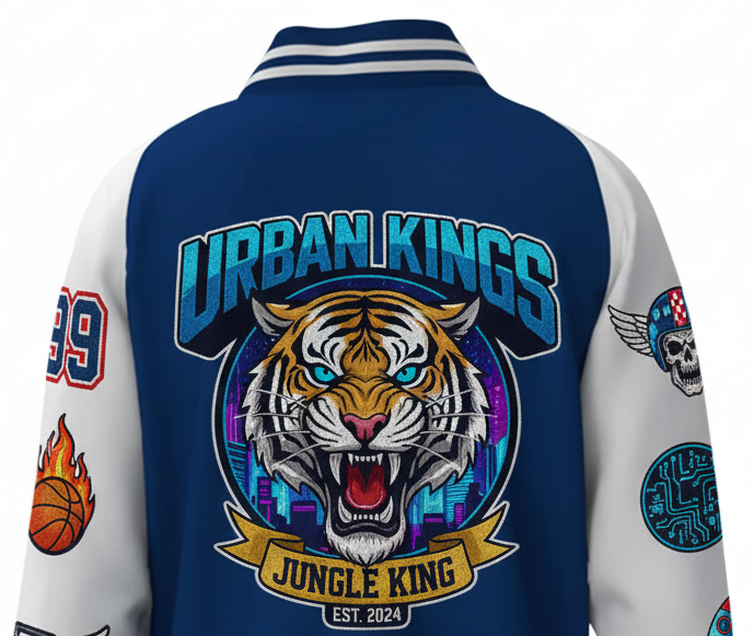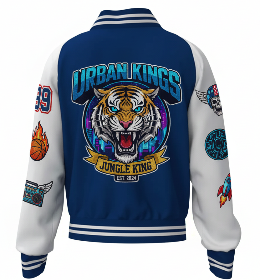 Chaqueta universitaria de lana ajustada para hombre con estilo, bombardero informal con cuello levantado y logotipo frontal, ropa de calle de moda, prendas de vestir exteriores