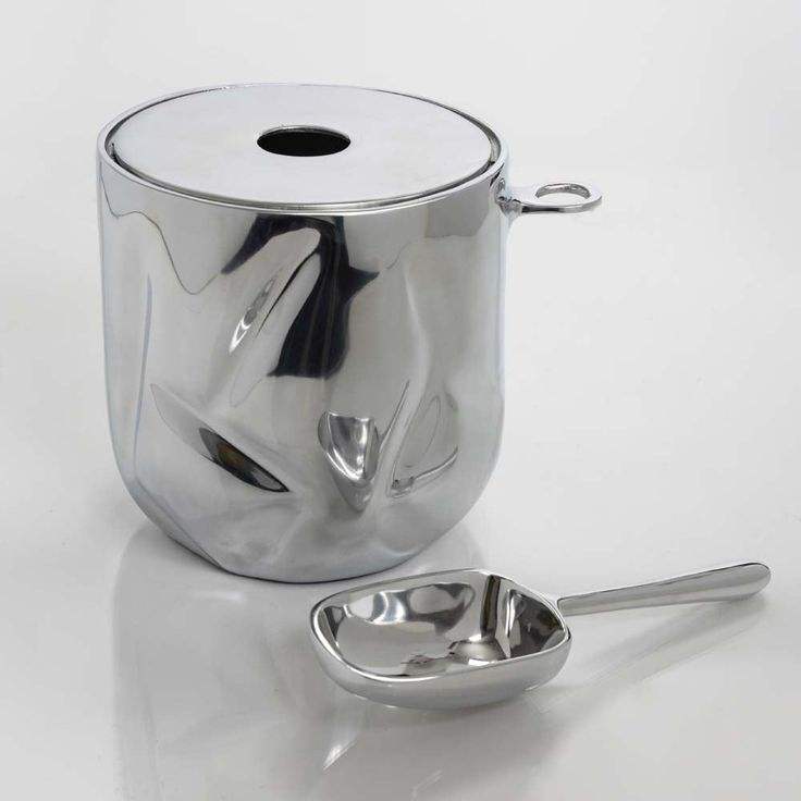 Elegante cubo de hielo de metal con forma ovalada, perfecto para bares, cafeterías, restaurantes y ambientes modernos de fiesta en casa