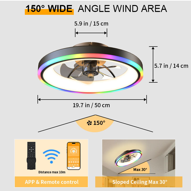 Stylish Modern 5-Blade Acrylic DC Motor LED 6-Speed Dimmable Low Noise High CRI 80 Flush Mount Kitchen Ceiling Fan Lighting