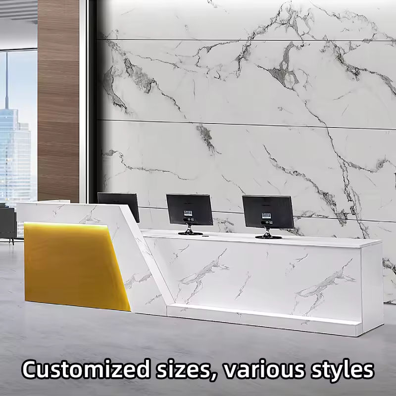 Mostrador de Recepción Moderno y Elegante con Panel Minimalista, Muebles de Oficina con Tira de Luz LED para Recepción Comercial