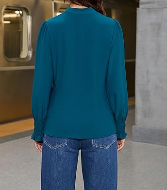 Blusa Moderna y Elegante con Cuello en V para Mujer, Manga Larga, Color Sólido, con Puños Fruncidos y Diseño Plisado, Perfecta para la Oficina