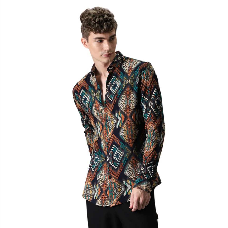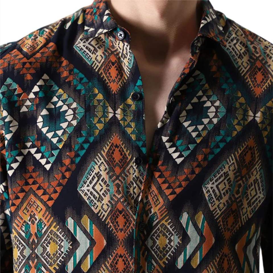 Elegante camisa de plumas marroquíes con estampados vibrantes Slim Fit cuello regular dobladillo curvo antiarrugas cómodo llamativo