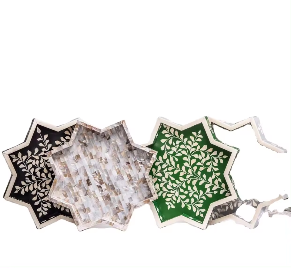 Elegante bandeja para servir huesos con incrustaciones de perlas madre hechas a mano, la mejor calidad, precio al por mayor de Crescent Crafts