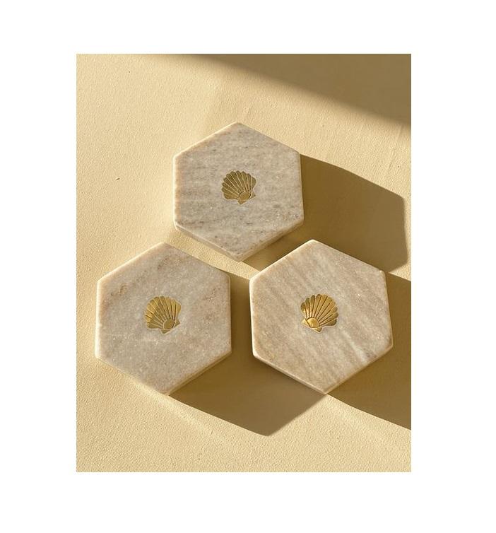 Elegante Juego de Posavasos de Mármol Multiusos con Superficie Resistente al Calor y al Agua, Ideal para Uso en Interiores y Exteriores