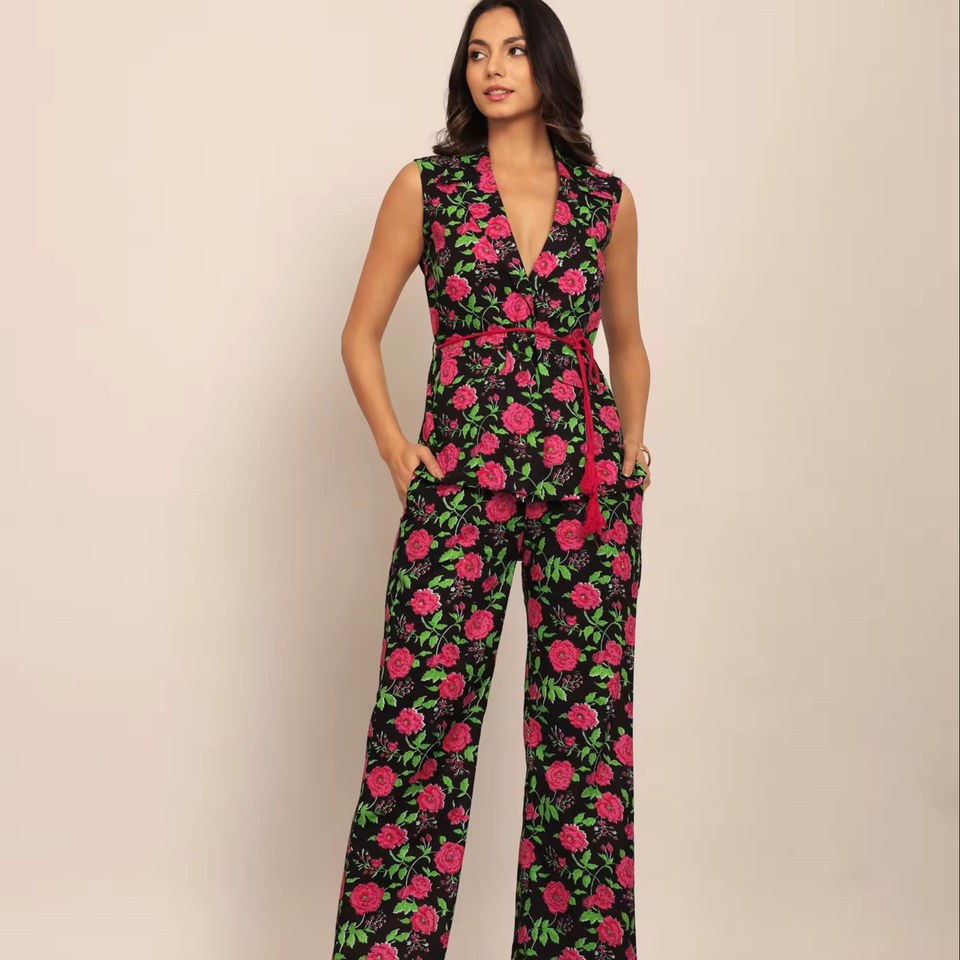 Nombre del producto:Pantalón relajado estampado floral multicolor con 2 bolsillos