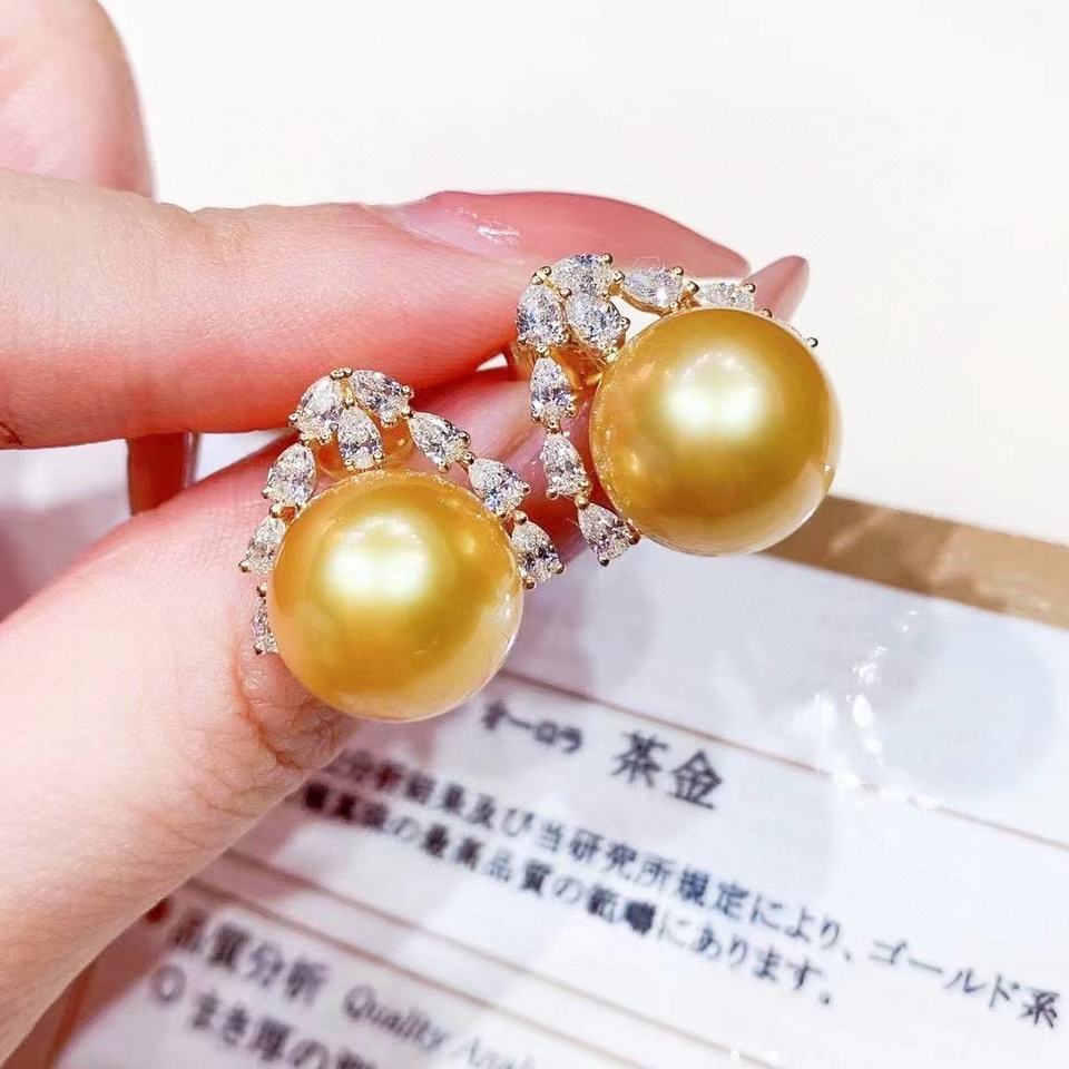 Elegantes Pendientes de Perlas de Agua Dulce Naturales de 3-4 mm con Borla de Oro G18k, con Caja de Regalo a Juego para Viajeros