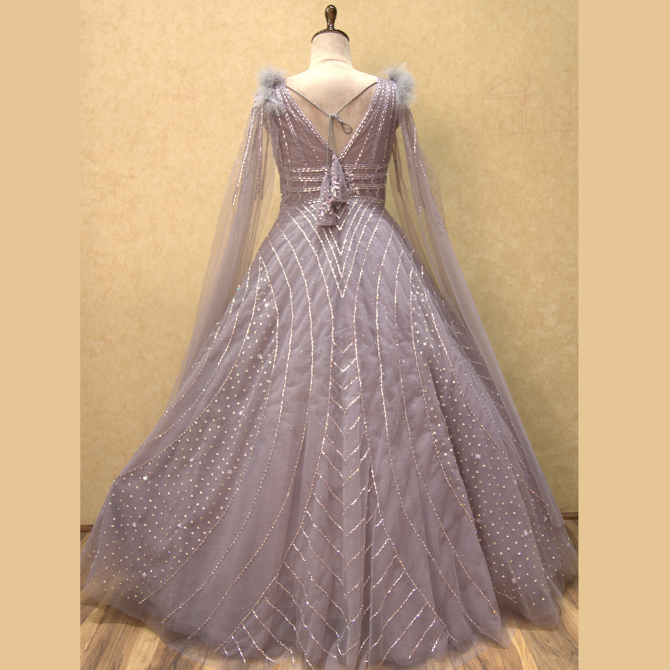 Elegante vestido de sombra de cebolla con cuentas exquisitas y trabajo manual de lentejuelas pesadas hecho de tela de red para fiestas y bodas al por mayor