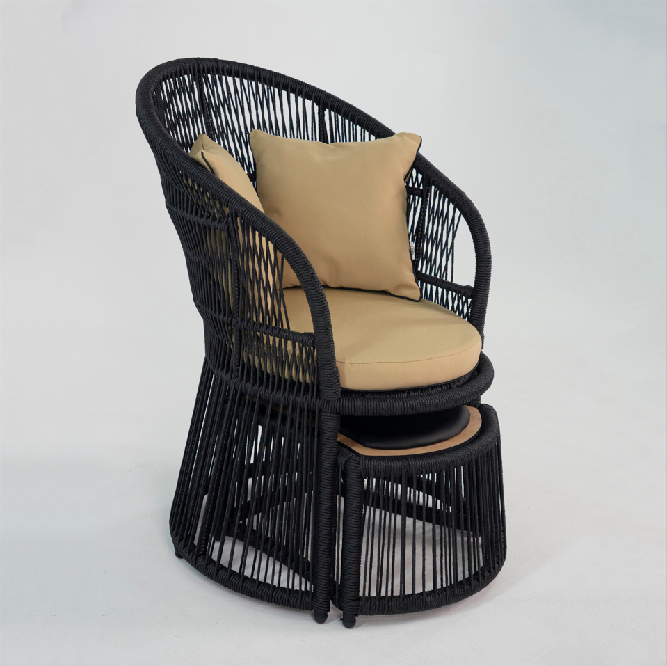 Silla de patio de ratán polivinílico negro y gris con cojines Sillas de jardín elegantes