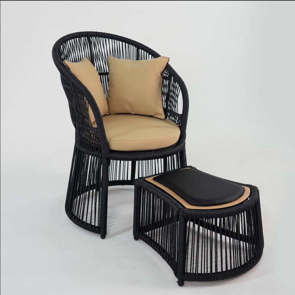 Elegante Silla de Ratán para Exteriores con Reposapiés, Estructura de Acero con Recubrimiento en Polvo, para Jardín o Patio