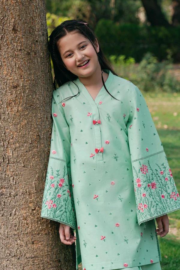 Elegante Vestido Formal para Niñas Pakistaníes, Estilo Regular, Bordado, Tela Acrílica, Protección Solar para Bodas