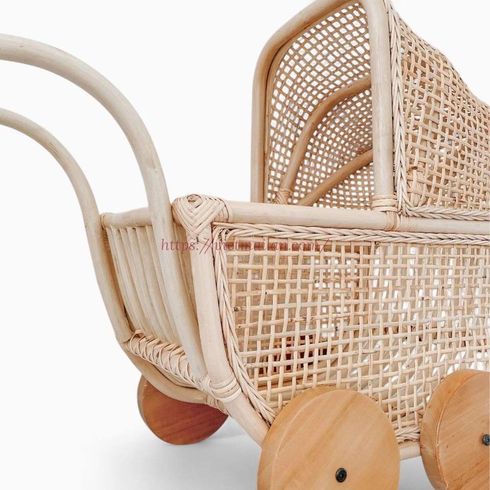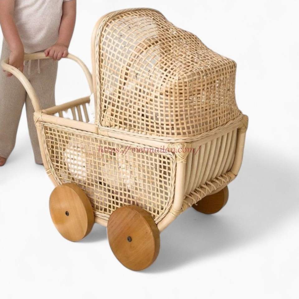 Cochecito Elegante para Muñecas y Niños de 6 Meses a 3 Años con Artesanía y Acabado Rústico Natural