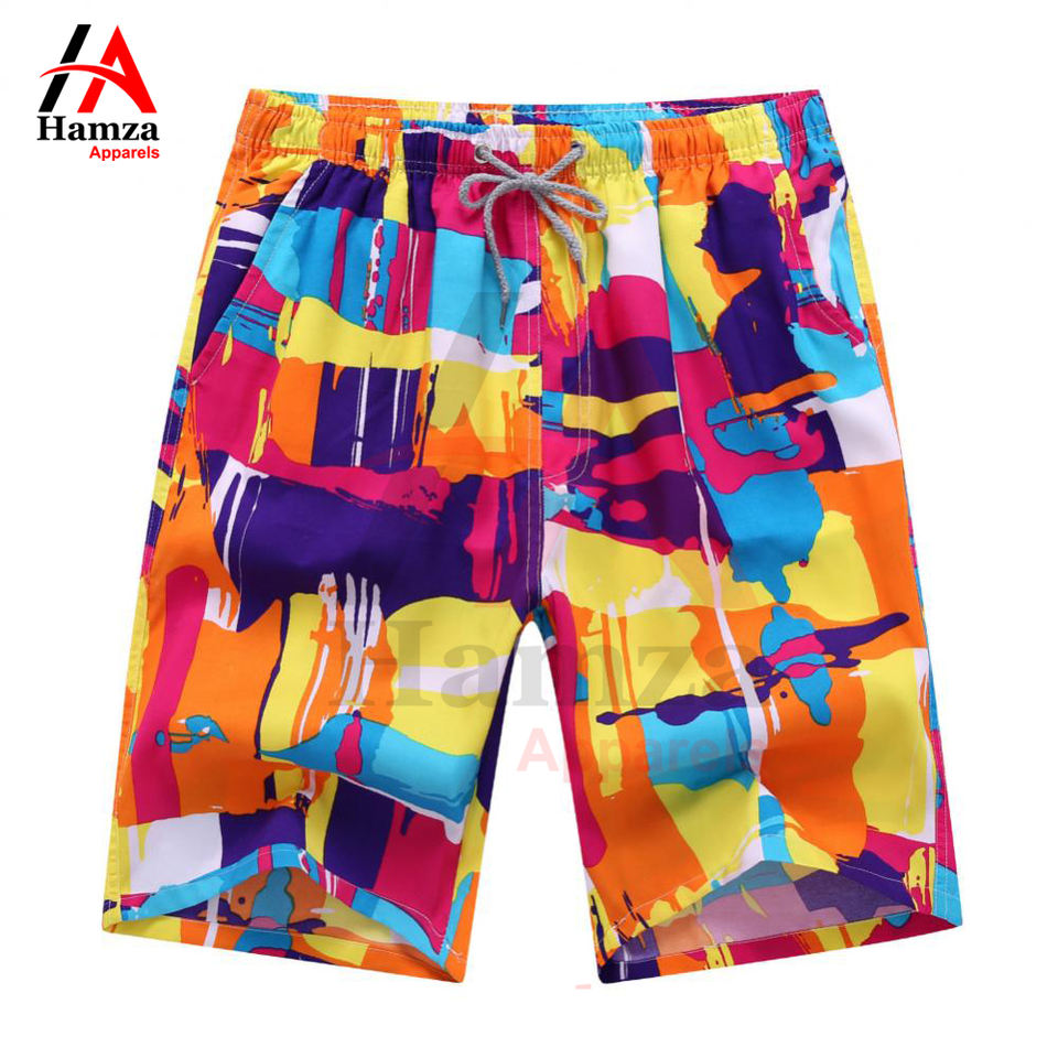 Elegante rojo azul marino camuflaje pantalones cortos de baño ligero de secado rápido poliéster alto GSM tela cintura elástica ajuste cómodo