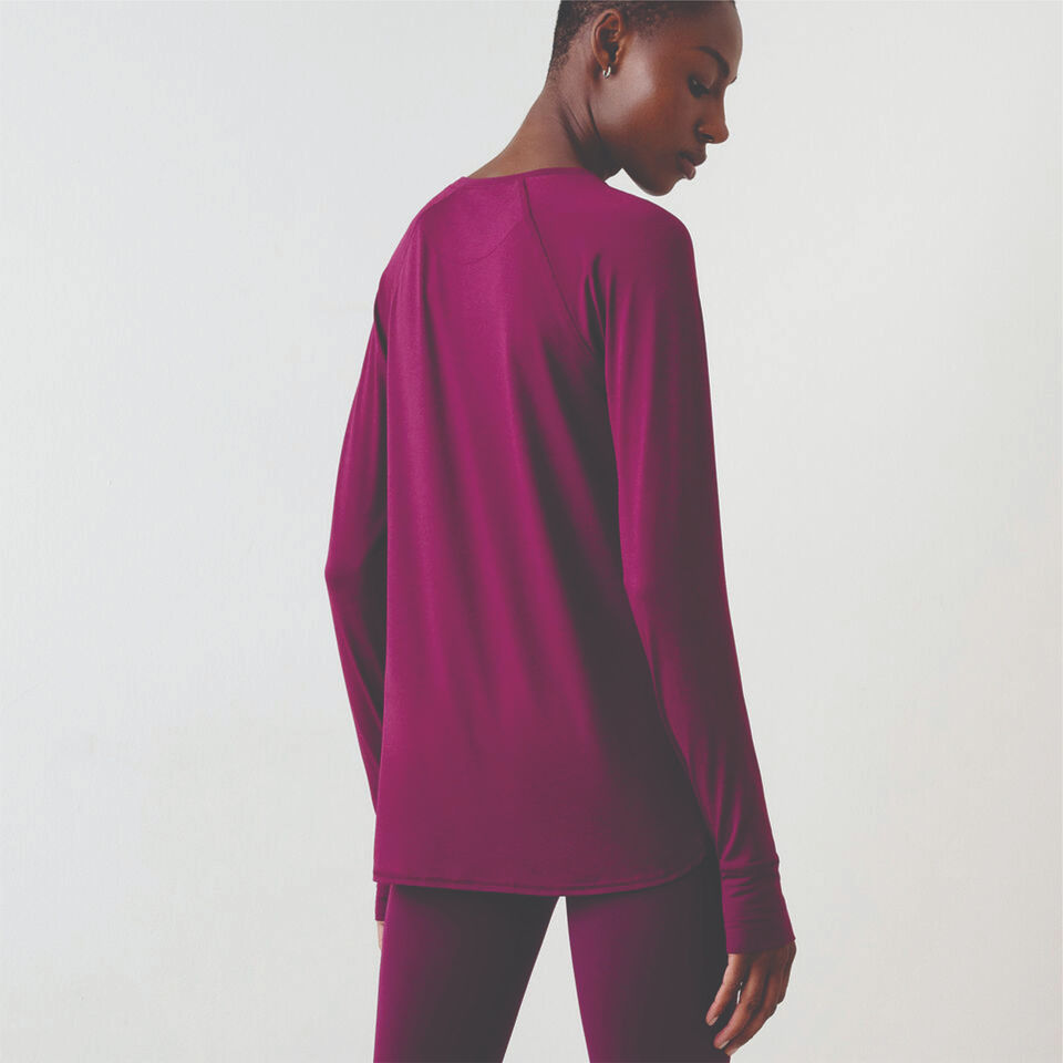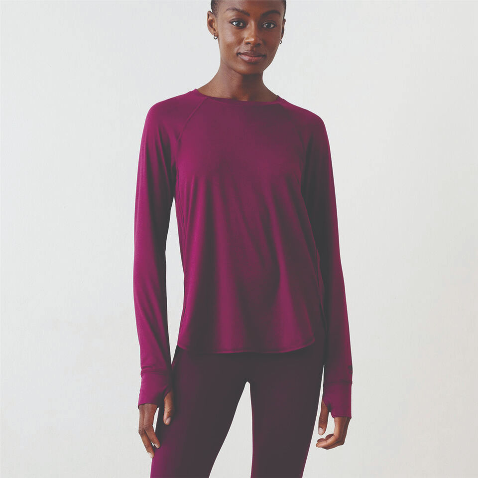 Camiseta elegante de manga larga con textura acanalada y tela suave y elástica que realza la forma y la comodidad, perfecta para usar en capas en cualquier temporada.