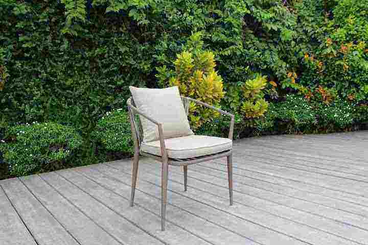 Elegante juego de comedor de silla de cuerda con marco de aluminio para patio y jardín