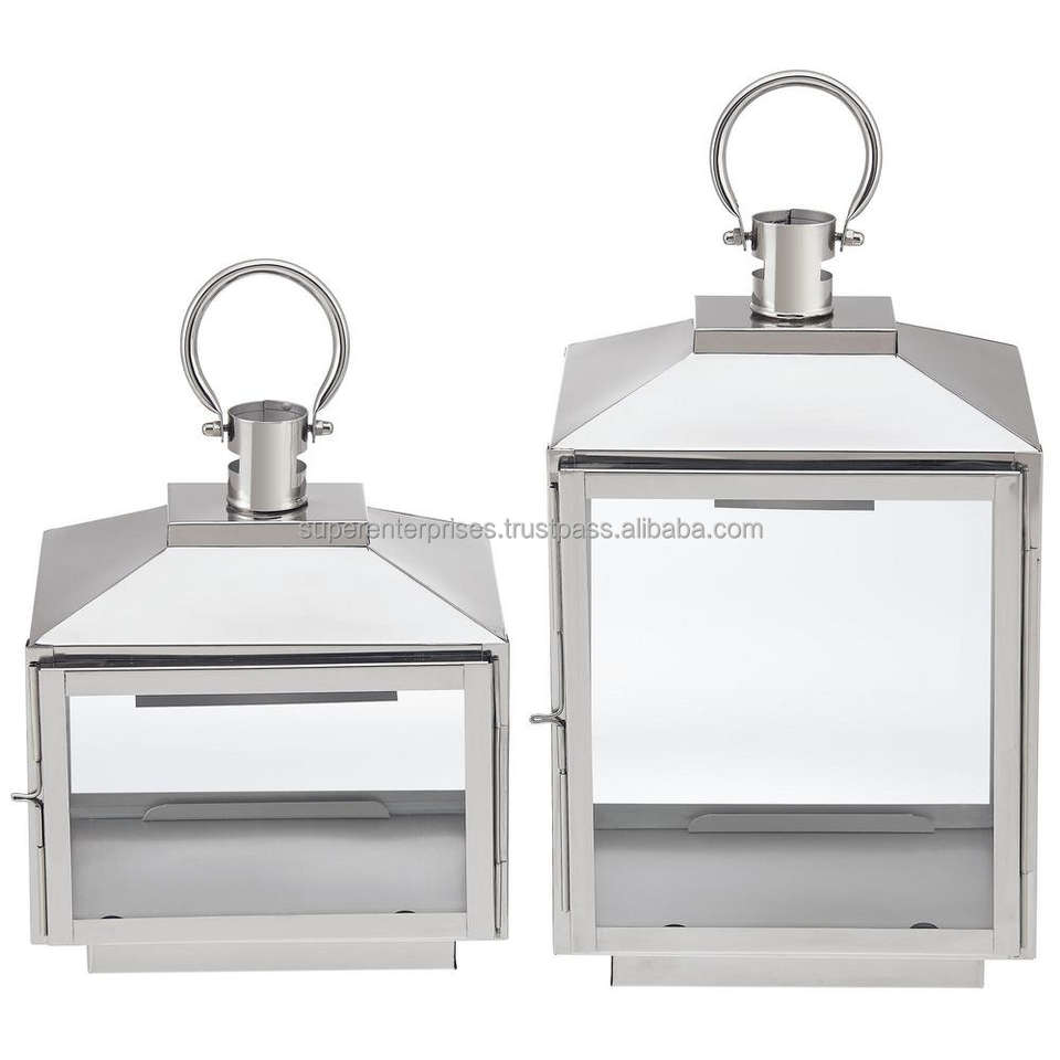Linternas con diseño de vela brillante para decoración del hogar, linternas con acabado plateado para interiores