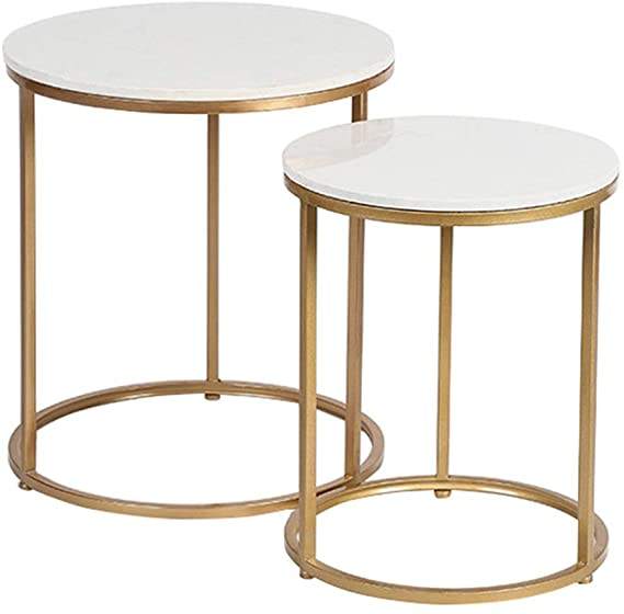 Mesa auxiliar tylish de piedra blanca y dorada, mueble de alta calidad para comedor, sala de estar de forma redonda