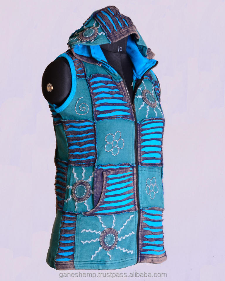Elegante azul cielo sombra con Crochet diseño Bohemia señoras sudaderas con capucha chaqueta CSWJ 402